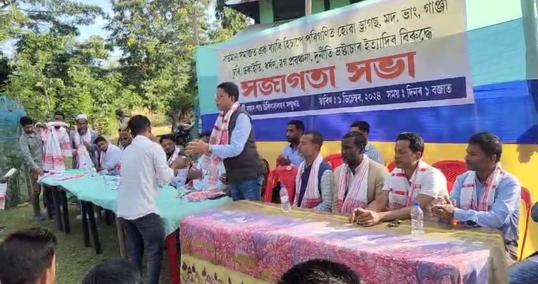 দেওবাৰে বিয়লি হোজাই জিলাৰ নখুটীৰ পশু চিকিৎসালয়ৰ সন্মুখত নখুটীৰ সচেতন ৰাইজৰ উদ্যোগত অনুষ্ঠিত হয় এক সজাগতা সভা।বৰ্তমান সমাজত এক ব্যাধি হিচাপে পৰিগণিত হোৱা ড্ৰাগছ,মদ, ভাং, গাঞ্জা, চুৰি, ডকাইট, ধৰ্ষণ , ঠগ, প্ৰৱঞ্চনা, দূৰ্নীতি, ভ্ৰষ্টাচাৰৰ বিৰুদ্ধে অনুষ্ঠিত হয় উক্ত সজাগতা সভা।। উক্ত সজাগতা সভাত উপস্থিত থাকে হোজাই জিলা অপৰাধ নিয়ন্ত্রণ শাখাৰ অতিৰিক্ত আৰক্ষী অধীক্ষক পল্লৱ তামুলী সহ জিলাখনৰ কেইবাজনো গন্যমান্য ব্যক্তি আৰু স্থানীয় ৰাইজ।উক্ত অনুষ্ঠানত বিশিষ্ট ব্যক্তি সকলে সমাজৰ পৰা এনে ব্যাধি কেনেদৰে আঁতৰ কৰিব পাৰি তাৰ ওপৰত বহুমুলীয়া ভাষণ প্ৰদান কৰে।লগতে দুদিনমান পূৰ্বে নখুটি অঞ্চলতেই হোজাই আৰক্ষীয়ে অভিযান চলাই বন্ধুক সহ দুজনক আটক কৰিছিল।পিছত তেওঁলোকক এৰি দিয়া হ’ল।ল’ৰা দুজনক আনে ফচাব বিচাৰিছিল কিন্তু এনে অপৰাধ জনীত কামৰ ক্ষেত্ৰত কোন দুষ্কৃতিকাৰী জড়িত আছিল, সেইবোৰো কেনেদৰে নিকা কৰি ৰাইজৰ মাজত ব্যাধি সমূহৰ বিৰুদ্ধে সজাগতা আনি সোণৰ নখুটিলৈ গঢ়ি তুলিব পাৰি তাৰ বাবে আজি এনেদৰে সজাগতা সভা অনুষ্ঠিত কৰা হৈছে বুলি উদ্যোগতাই জানিবলৈ দিয়ে।