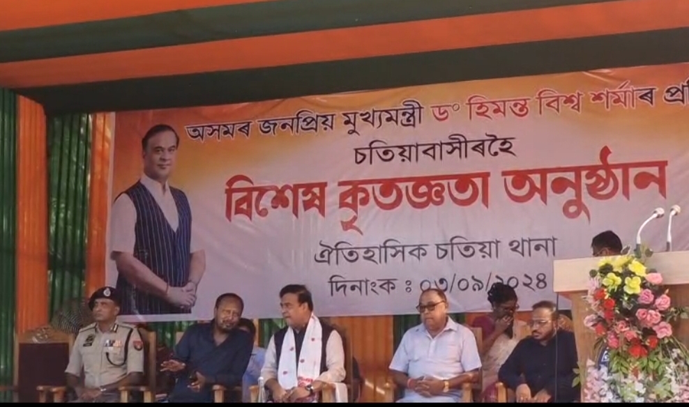ভাৰতৰ স্বাধীনতা আন্দোলনৰ ইতিহাস বিজৰিত ঐতিহাসিক চতিয়া থানাত আজি বিয়লিৰ ভাগত উপস্থিত হয় মুখ্যমন্ত্ৰী হিমন্ত বিশ্ব শৰ্মা।অহা বছৰৰ পৰা ২০ আগষ্টৰ দিনটো চৰকাৰীভাৱে চতিয়া দিৱস হিচাপে পালন কৰাৰ কথা অসম বিধানসভাৰ মজিয়াত মুখ্যমন্ত্ৰী হিমন্ত বিশ্বশৰ্মাই ঘোষণা কৰাৰ পাছত মুখ্যমন্ত্ৰী গৰাকীক কৃতজ্ঞতা জনোৱাৰ বাবে আহ্বান কৰা সভাত অংশগ্ৰহণ কৰে মুখ্যমন্ত্ৰী গৰাকীয়ে।সভাত মুখ্যমন্ত্ৰী গৰাকীয়ে স্বাধীনতা আন্দোলনৰ সেনানী সকলক শ্ৰদ্ধাৰে সোৱৰণ কৰি চতিয়া থানাখন পয্যটন আৰু ঐতিয্যক্ষেত্ৰলৈ ৰুপান্তৰিত কৰাৰ বাবে প্ৰথম পয্যায়ত ৫কোটি টকাৰ অনুদান আগবঢ়োৱা কথা ঘোষণা কৰে।ইফালে সংবাদ মেলত মুখ্যমন্ত্ৰীগৰাকীয়ে অনলাইন ট্ৰেডিং এপত ধন বিনিয়োগ কৰাৰ পৰা জনসাধাৰণক আঁতৰি থাকিবলৈ আহ্বান জনায়।উল্লেখ্য যে বৃটিছৰ বিৰুদ্ধে স্বাধীনতা আন্দোলনৰ সময়তে ভাৰতৰ ভিতৰতে পোন প্ৰথমবাৰৰ বাবে চতিয়া থানাত বৃটিছৰ পতাকা নমাই ত্ৰিৰংগা পতাকা উত্তোলন কৰা হৈছিল যদিও বিনা ৰক্তপাতে এই ঘটনা সংঘটিত হোৱাৰ বাবে এই কথা পোহৰলৈ অহা নাছিল।কিন্তু অসম চৰকাৰে যোৱা ২৯ আগষ্টত বিধানসভাৰ মজিয়াত চৰকাৰীভাৱে ২০আগষ্টৰ দিনটো ‘চতিয়া দিৱস’ হিচাপে পালন কৰি একপ্ৰকাৰে চতিয়াৰ এই স্বাধীনতা আন্দোলনৰ ঐতিহাসিক ঘটনাক স্বীকৃতি প্ৰদান কৰাত চতিয়াৰ ৰাইজে সন্তোষ প্ৰকাশ কৰাৰ লগতে মুখ্যমন্ত্ৰী গৰাকীক কৃতজ্ঞতা জ্ঞাপন কৰিছে।অনুষ্ঠানত চতিয়াৰ বিধায়ক পদ্ম হাজৰিকাৰ লগতে শোণিতপুৰ লোকসভা সমষ্টিৰ সাংসদ ৰঞ্জিত দত্ত উপস্থিত আছিল।